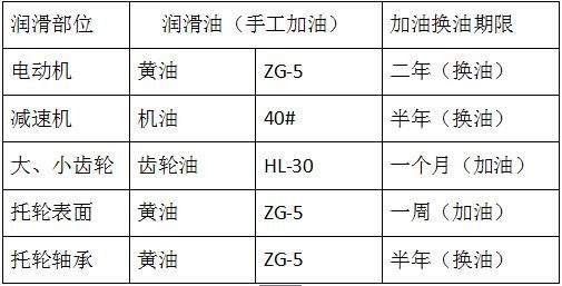 3.檢查各潤滑點油質是否清潔,定期加油。潤滑制度見表: